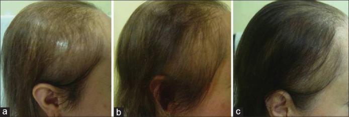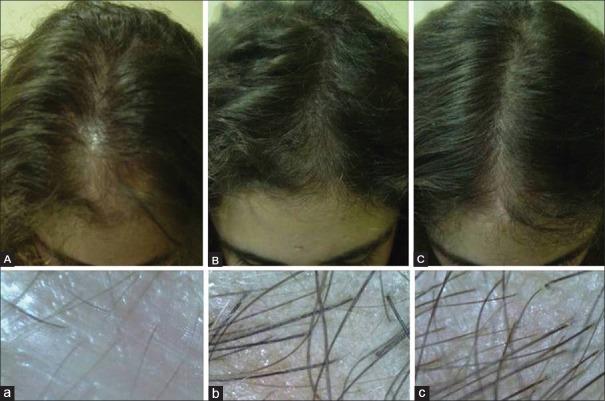 במחקר זה התמקדו במבחן שנקרא hair pull test או בפירוש חופשי, ״בדיקת משיכת שיער״, המבחן בוצע על גברים ונשים, 3 פעמים על ידי אותו רופא, כאשר צרור של כ-50-60 שיער נתפס בין האגודל, האצבע המורה והאצבע האמצעית מהבסיס קרוב לקרקפת. השיער נמשך בחוזקה מהקרקפת, והשיער שנתלש נספר בכל מפגש. כדי להעריך את צמיחת השיער הכוללת, נפח השיער, איכות השיער ומלאות השיער, תמונות גלובליות נלקחות בכל מפגש מהתצוגה הקדמית, הקודקודית, הצידית והאחורית. תוצאות המחקר היו מאד מעודדות: צמיחת שיער נראתה בשישה מטופלים לאחר 7 ימים ובארבעה מטופלים לאחר 15 יום. בתום 3 חודשים, לכל המטופלים הייתה צמיחת שיער טובה. שלושה מטופלים התלוננו על כאב ראש קל לאחר ההליך הראשוני שהוקל לאחר אקמול 500 מ"ג. לאף אחד מהמטופלים לא הייתה דלקת או זיהום. תוצאות בדיקת משיכת השיער מראות כי מספר השיער שנשלף ירד בממוצע של 65%. לקראית המחקר לחץ כאן.